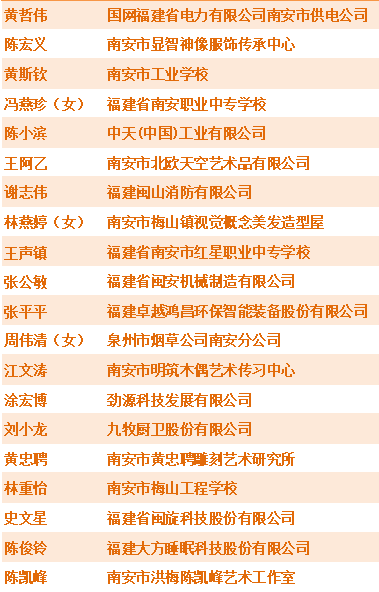 11月2日,南安市召开第六批“南安工匠”命名颁奖会,全市20名技能人才获命名“南安工匠”并受表彰。