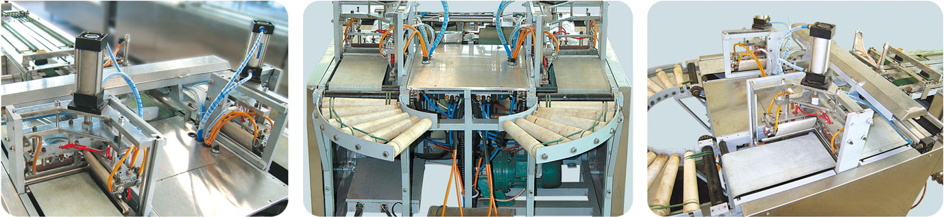 该设备率先实现了香坯自动放片、喷药、入袋、封口流水作业自动化生产,香坯在喷药包装过程中无人接触,大大降低工人劳动强度,提高生产效率。该电气系统采用日本三菱PLC控制,操作便捷,设备故障率低。